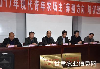 11月19日,甘肅省2017年現(xiàn)代青年農(nóng)場(chǎng)主省級(jí)培訓(xùn)在甘肅農(nóng)業(yè)大學(xué)正式開班。這次培訓(xùn)由省農(nóng)牧廳主辦,甘肅省農(nóng)業(yè)廣播電視學(xué)校具體組織,甘肅農(nóng)業(yè)大學(xué)承辦。培訓(xùn)分種植和養(yǎng)殖兩個(gè)班分別進(jìn)行,來自全省各地的200多名種養(yǎng)殖大戶,家庭農(nóng)場(chǎng)主、農(nóng)民合作社骨干和創(chuàng)業(yè)大學(xué)生等將參加為期8天的培訓(xùn)。省農(nóng)牧廳副廳長(zhǎng)楊祁峰、甘肅農(nóng)業(yè)大學(xué)副校長(zhǎng)余四九出席開班儀式并講話,省農(nóng)牧廳科教處、甘肅農(nóng)業(yè)大學(xué)繼續(xù)教育學(xué)院和省農(nóng)業(yè)廣播電視學(xué)校負(fù)責(zé)人參加了開班式。