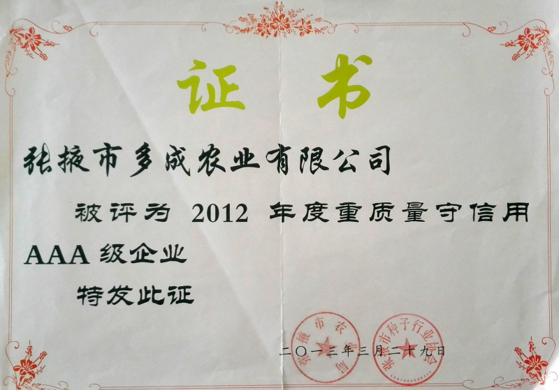 您現(xiàn)在的位置: 張掖市多成農(nóng)業(yè)有限公司 >> 資質(zhì)榮譽(yù) >> 公司榮譽(yù) >> 正文